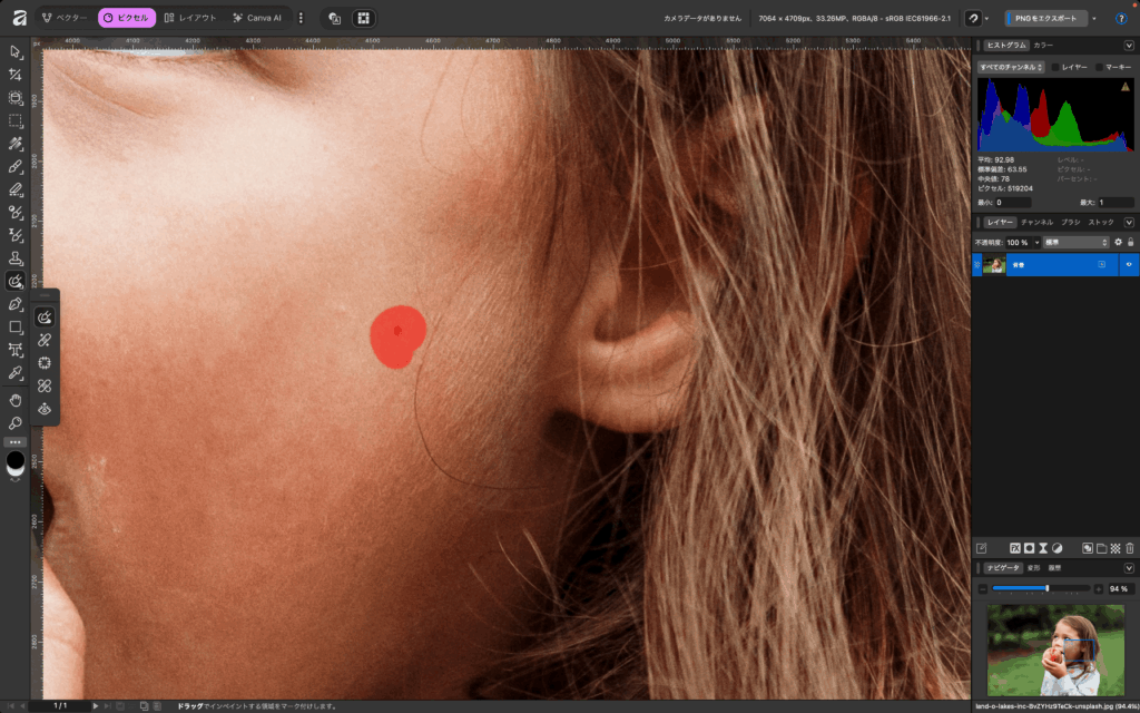 Affinityのインペインティングブラシツールでホクロやシミを消す方法