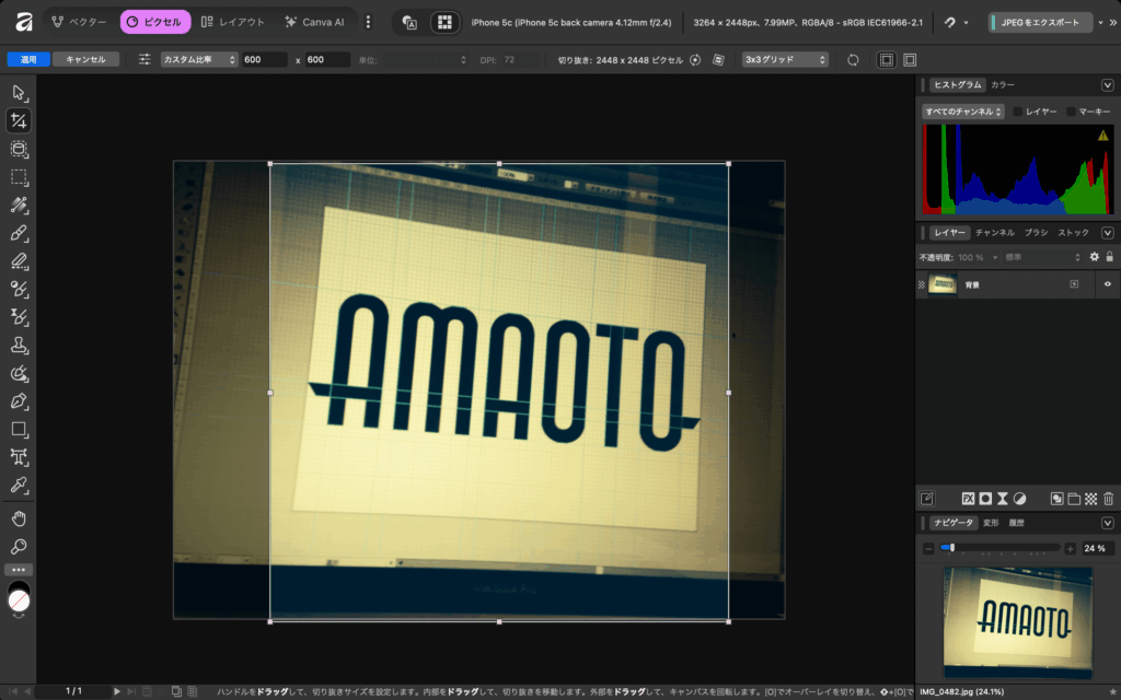 本格的にAffinityを実案件に投入してから、色々な機能をチェックしているのですが、個人的にイラストレーターはデザインの確認か、自社名刺作成程度しか使っていないのですが、フォトショップでのトリミングはcmsdesignの更新でも結構使っております。