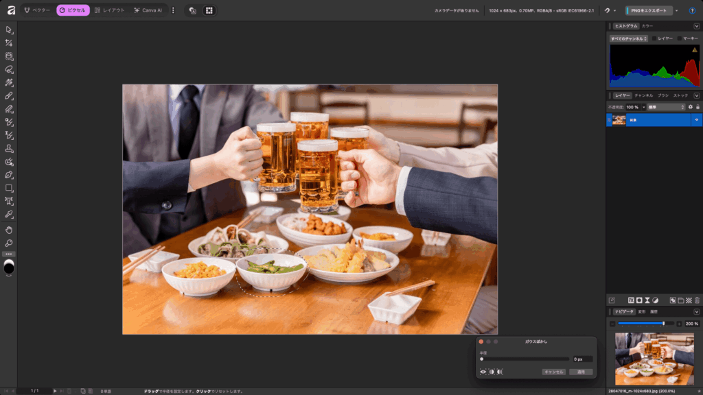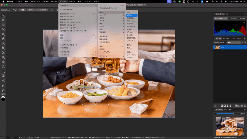 今回は、Affinityで画像の一部をぼかす方法を書きたいと思います。
