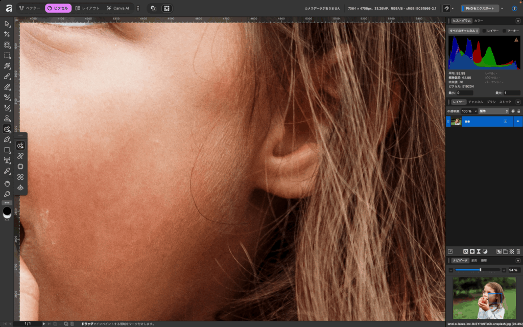 今回は、読み込んだ画像を直接編集しましたが、元画像を保持したまま編集を行いたい時は、新規でピクセルレイヤーを作成して非破壊編集をする方法もあります。