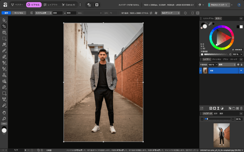 Affinityで人物画像をトリミングする