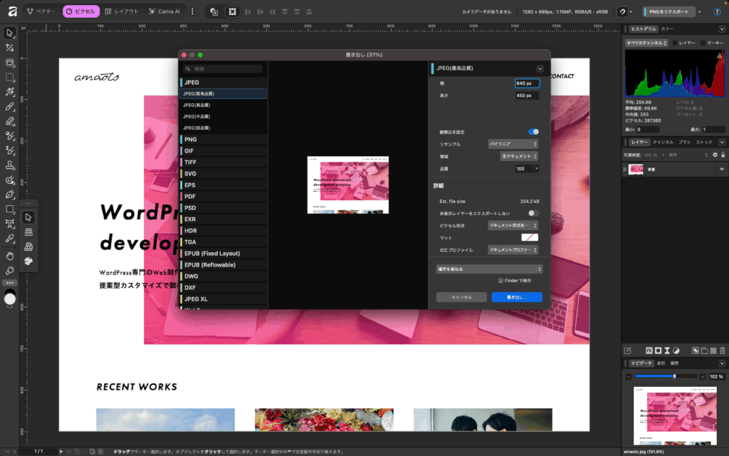 Affinityで画像をリサイズする方法