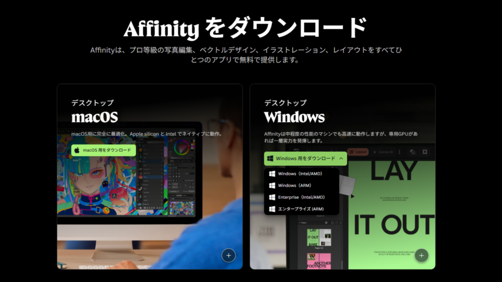 Affinityのダウンロード、Windowsはどれを選べばいい?【4つの違いをやさしく解説】