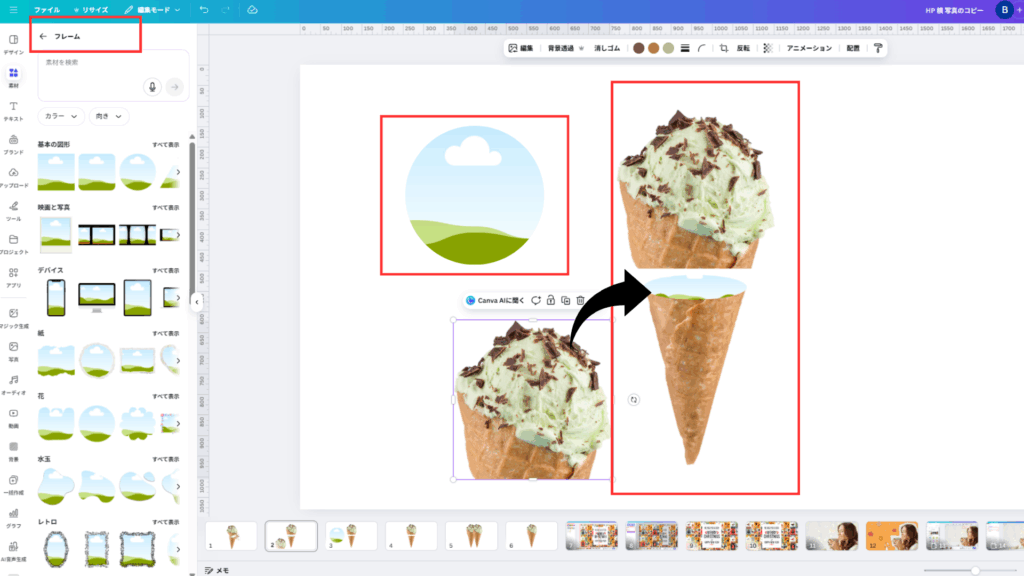 Canvaで食品を“半分にカットして動きを出す”デザインテクニック