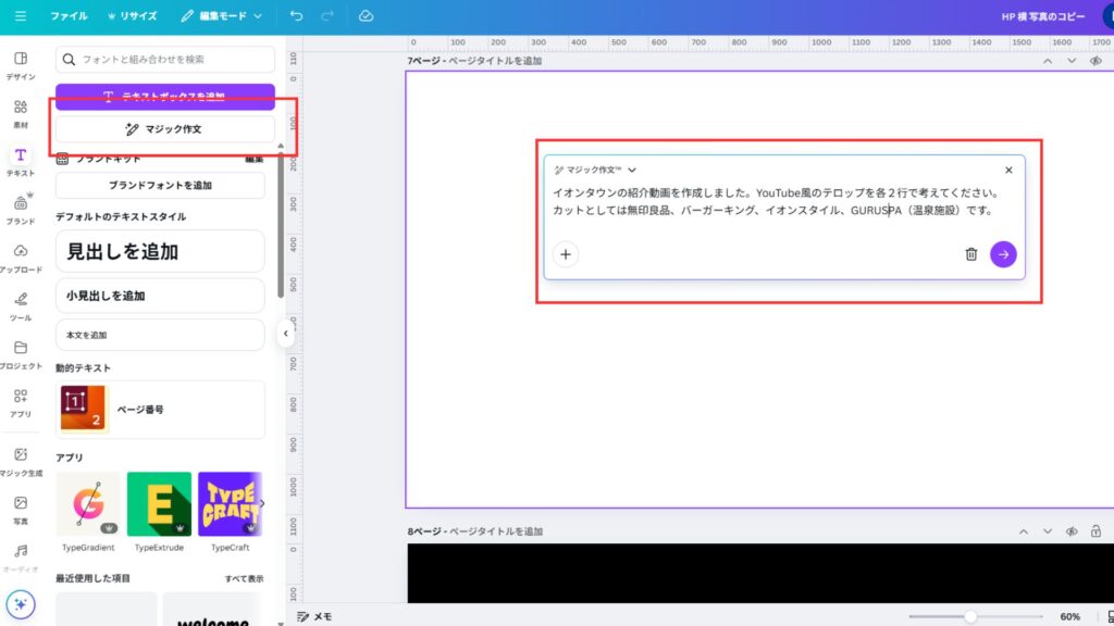 そんなときに便利なのが、CanvaのAI機能「マジック作文」です。