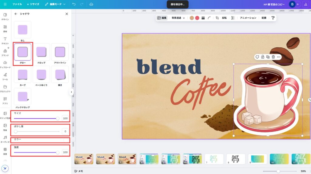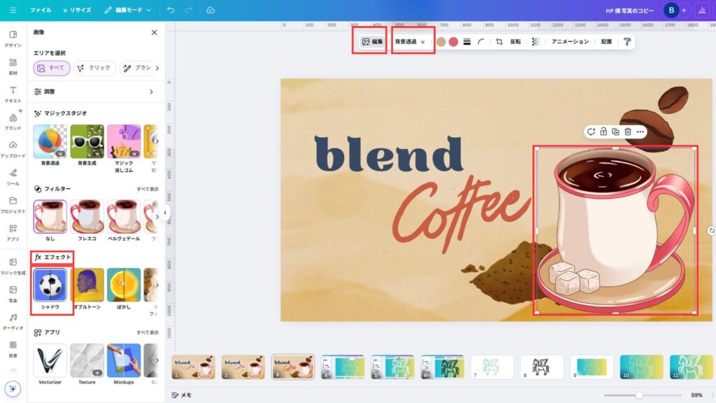 - イラスト or 写真を選択して「背景リムーバー」で背景を透明化