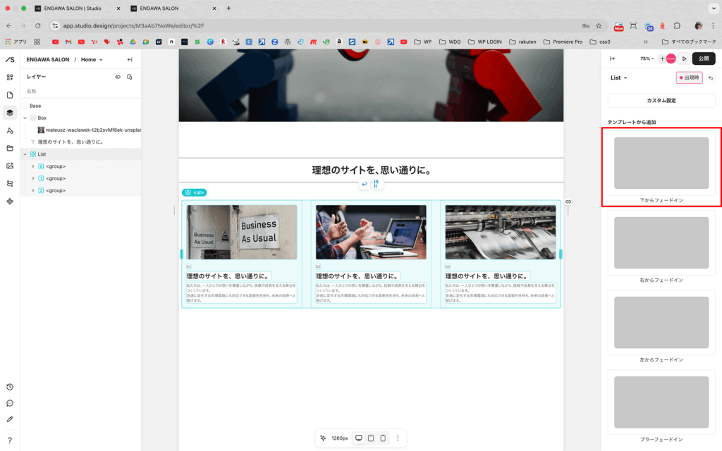 /Studioでスクロールアニメーションを設置する方法